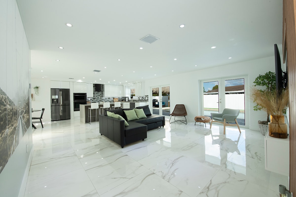 Dobro došli u Maromar House #1, moderan, elegantan dom udaljen 6 minuta od Koral Gejblsa i 10 minuta od aerodroma u Majamiju (MIA). Idealno za boravke u slobodno vreme, poslovne boravke ili boravke radi medicinskog oporavka. 1. Dupleks – dva odvojena doma za grupe 2. Najbolja lokacija u srcu Majamija 3. 15 minuta do Vinvuda 4. 10 minuta do Brikela 5. 5 minuta do aerodroma 6. 20 minuta do Saut Biča 7. Za 5 osoba (1 bračni krevet, 1 bračni krevet, 1 bračni krevet) 8. Besplatan parking 9. Opremljena kuhinja 10. Brzi Wi-Fi 11. Mirno, bezbjedno područje – privatno unutrašnje dvorište