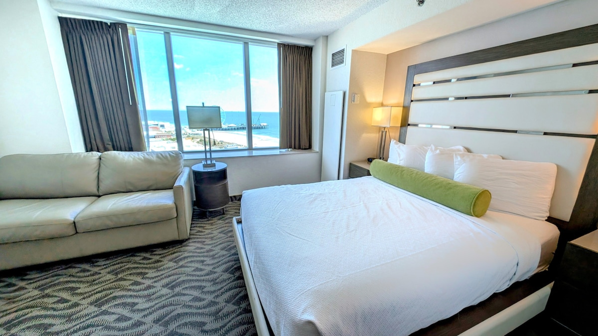NAJBOLJA LOKACIJA! LOKACIJA! LOKACIJA! Dobro došli u srce Atlantik Sitija koji se nalazi na okeanu i šetalištu usred onoga što ovaj ELEKTRIČNI GRAD nudi! PRAKTIČNOST JE KLJUČNA! Imaćete neposredan pristup plaži, šetalištu i životu u kazinu! Sadržaji u sklopu odmarališta uključuju spoljni sezonski bazen, luksuzni spa centar, fitnes centar, igraonicu i još mnogo toga! Omogućite svom automobilu miran odmor tako što ćete parkirati (BESPLATNO!) u sigurnoj, natkrivenoj garaži odmarališta.