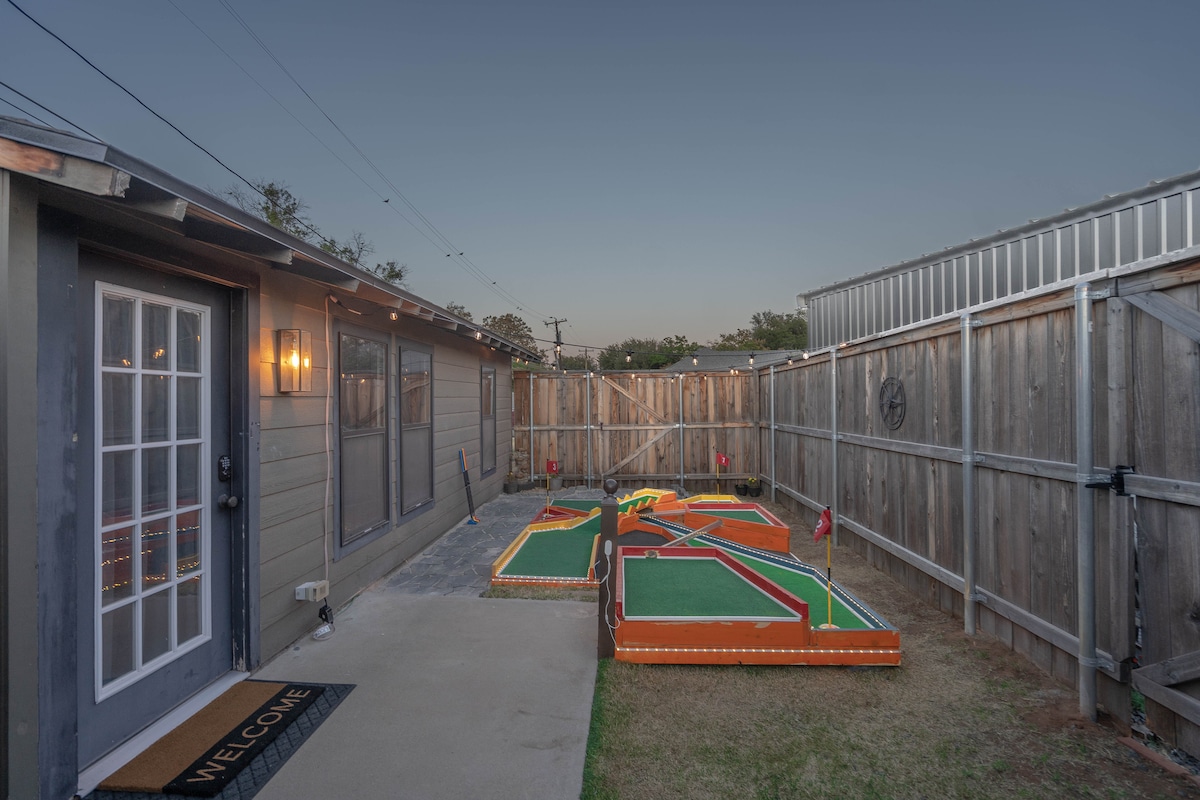 Escape to your private retreat with Mini Golf & Fire Pit. Newly remodeled; modern design offering total privacy and luxury comfort. Perfect for couples or business travelers, it offers Fast Wi-Fi and serene setting with thoughtful touches to elevate every moment of your stay. • Blackout curtains for cozy nights • Private Entrance and 8ft Fenced Yard • Smokeless Fire Pit & BBQ • Fully equipped kitchen & Nespresso Indoor putting for rainy days, no tee time required!
