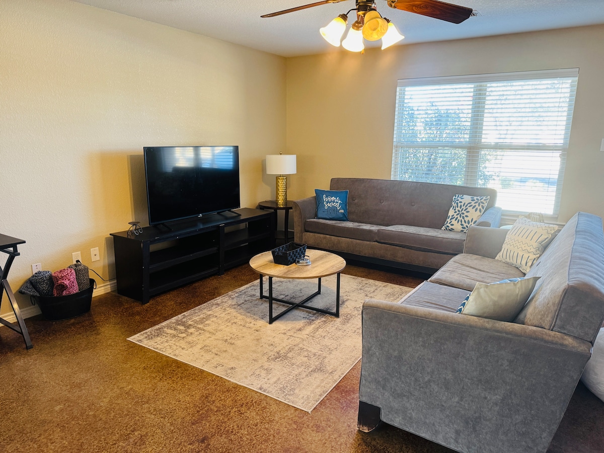 Savršeno smješteno mjesto za porodice/kućne ljubimce, bilo da je u gradu zbog posla, porodice ili sporta. Downtown, Midland Memorial Hospital, and all you need is just minutes away. Kao i ŠOLJE i Ulmer park sa preuređenim terenom za odbojku na pijesku ispred vaših vrata. Naš 3BR 1B ima 2 QB spavaće sobe sa namjenskim radnim prostorom i vatrogasne televizore u svakoj sobi. Bočna soba - dodatni dnevni boravak ili spavaća soba s kaučem na razvlačenje i vešernicom. **PRIVATNA gostinjska kuća(1BR 1B) dostupna za ZASEBNU REZERVACIJU * PROVJERITE DOSTUPNOST **