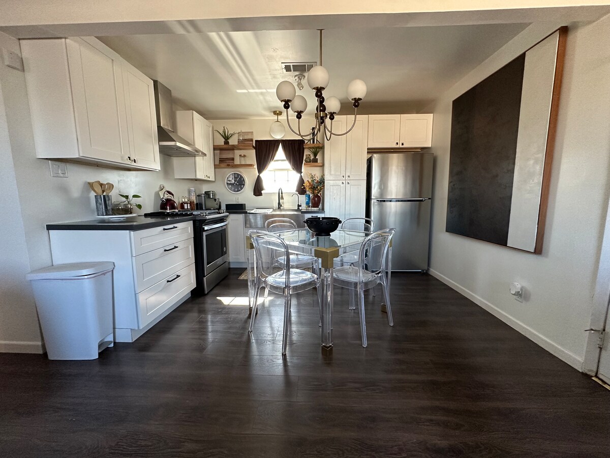 Centrally located near various restaurants & shopping, all short distance away. Spacious 1BR 1 bath with open floor plan for kitchen/dinning/living room. Our unit offers free Wi-Fi, keyless entry, and full kitchen. Fresh linens, towels, iron/ironing board, and washer/dryer can be found in spacious closet. Bedroom has Queen bed, desk, and each room has Amazon Fire smart TV w/ remote to access multiple streaming apps A small patio is located off living area, with seating and space for pets.