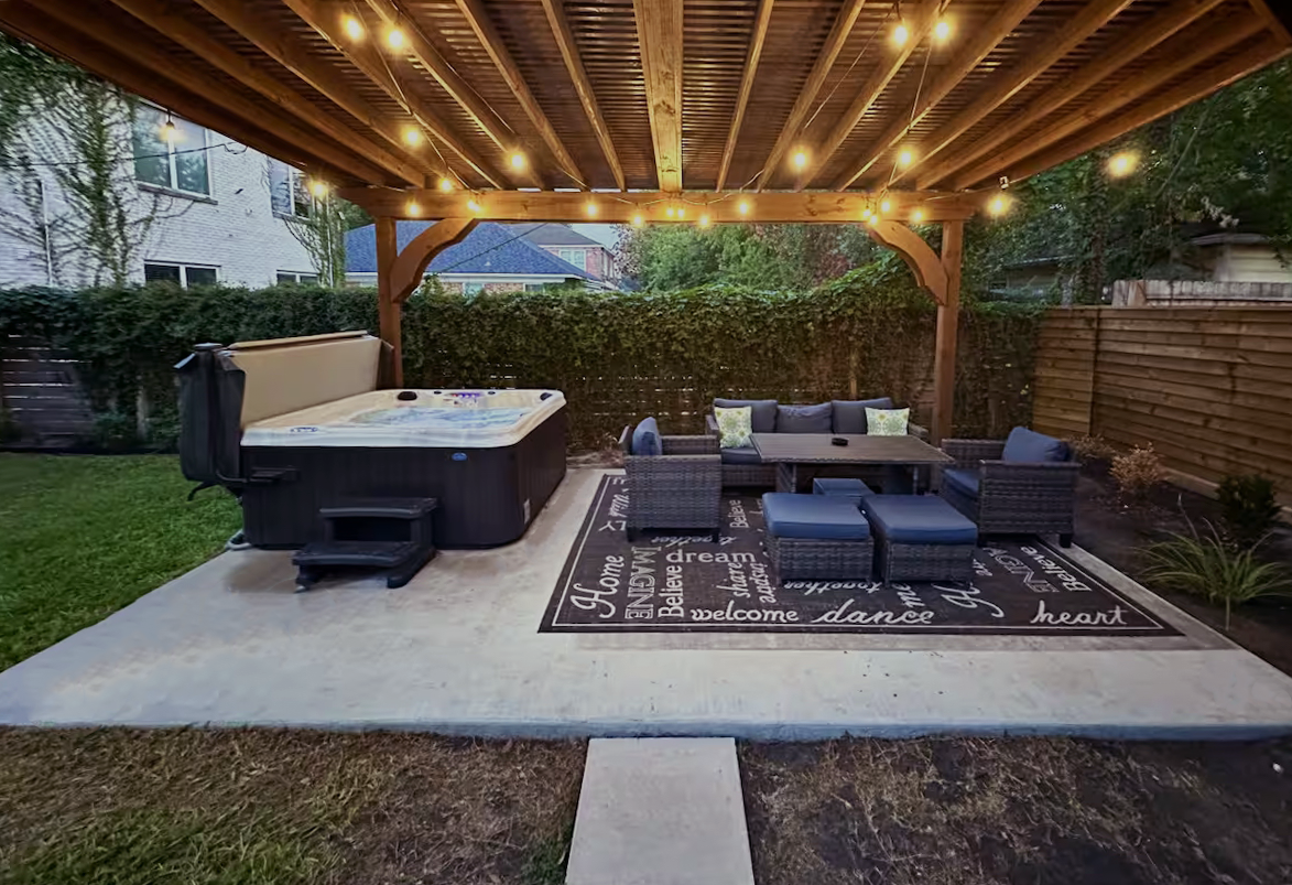 Escape to our charming Rustic Casita, a private studio apartment nestled in the back of our home, perfect for a romantic Couples Retreat or a relaxing getaway. Our secluded espace offers; •Keyless Gated Entrance EV ⚡️CHARGING ( Bring your own Cable) Dining table under a covered porch •Private jacuzzi spa for ultimate relaxation Located near Heights and Garden Oaks, just 12 minutes from downtown Houston and 20 minutes from IAH airport ✈️ Long Term Stays Welcome 🙏