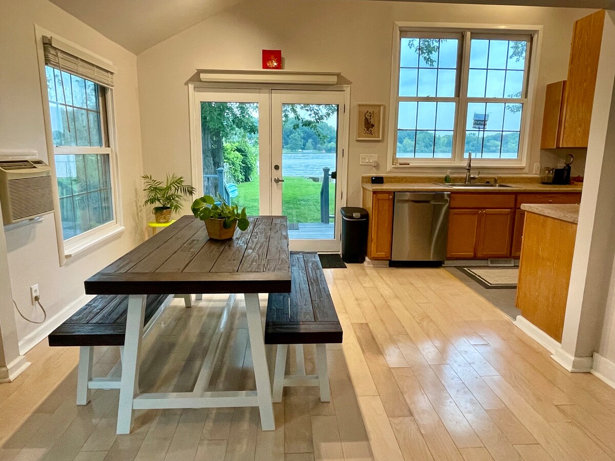 Novi studio apartman sa zasebnim ulazom. Potpuno opremljena kuhinja, novi bračni krevet, sav novi namještaj, uključujući radni sto, Wi-Fi, mnogo prostora za odlaganje, novi frižider, šporet, mikrotalasnu pećnicu, TV od42inča i mašinu za sudove. Jedinica uključuje sopstvenu mašinu za pranje i sušenje veša i ima predivan pogled na jezero ispred. Nalazi se u blizini bioskopa, kuglanja, restorana, tržnih centara, prodavnica namirnica, velikog državnog rekreativnog parka, skijanja i pogodnog za aerodrome. Unutrašnja jedinica kupatila sa 2 naslonjača