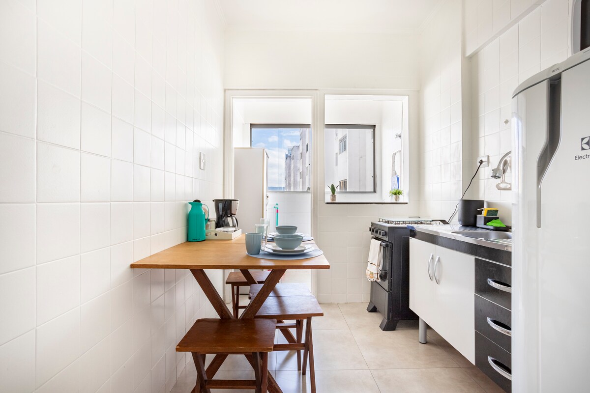 Apartamento de 1 quarto completamente reformado, equipado, mobiliado. Extremamente aconchegante e confortável, ideal para o seu final de semana a 2, com amigos ou sua estadia para Home Office. A uma quadra da praia e poucos metros da melhor rua comercial da Ponta da Praia. Com diversas lojas, padaria, mercado, farmácia, quitanda, restaurantes e muito mais. Próximo ao maior shopping de Santos. (500 metros) Esqueça o carro, faça tudo a pé! Prédio familiar com elevadores e portaria 24h.