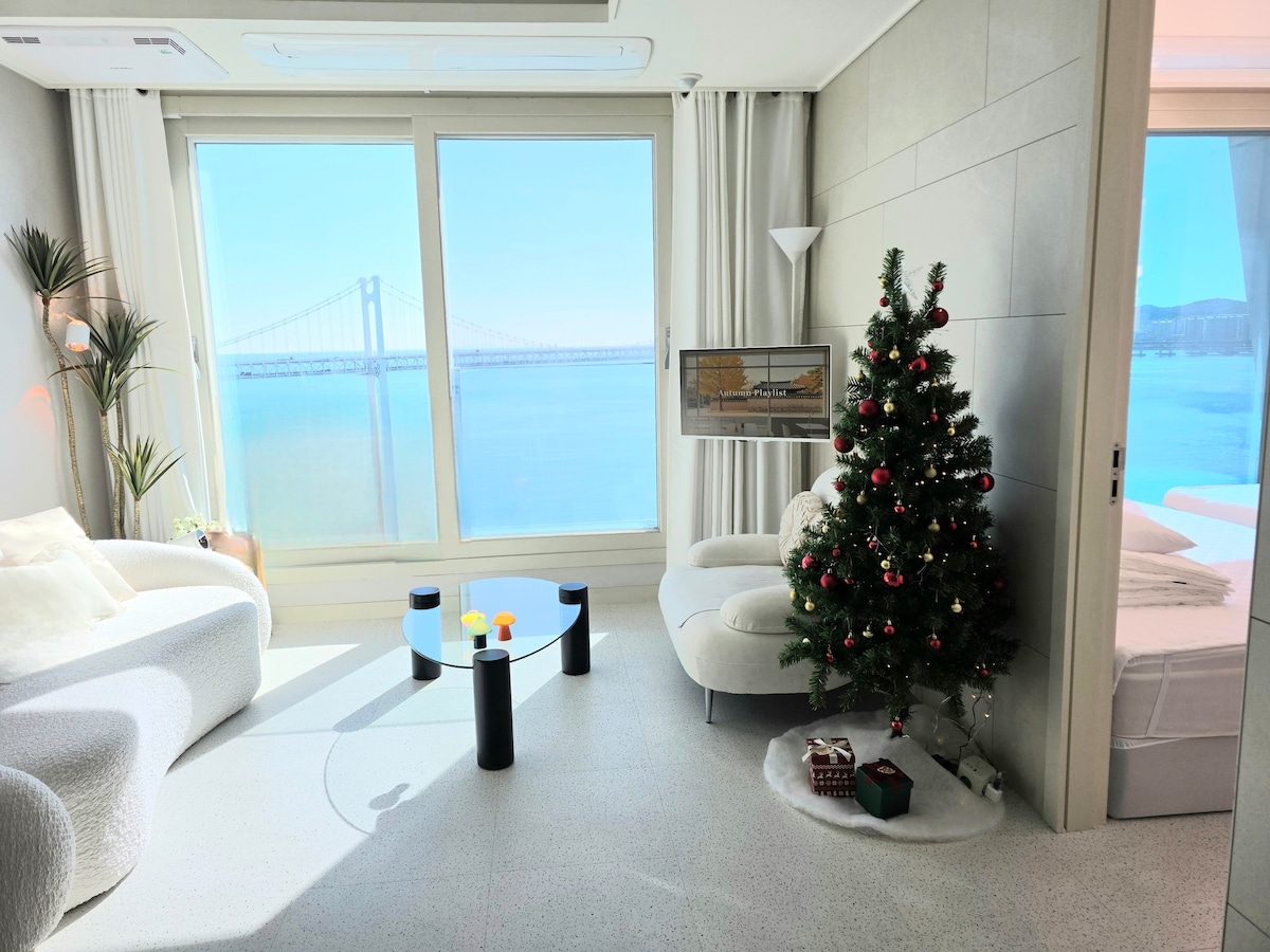 ❤️최근 방 확장 공사를 하여 침실 2개, 거실 1개의 구조로 퀸 침대 1개, 더블 침대 2개로 여유있게 주무실수 있어요:) 안리빌라(Anri villa)를 찾아주셔서 감사합니다. 🎇초근접 광안대교를 볼 수 있는 환상적인 브릿지 뷰(full ocean view) 💕거실과 침실 모두에서 볼 수 있는 힐링 풀오션뷰와 광안대교뷰 "인생샷을 남겨보세요"💖 신축 20평형대 프리미엄급 숙소로👍 매일 침구류 세탁과 살균소독 및 청소, 청결을 최우선으로 합니다.😉🎇 🍃숙소 건물내 지하1~3층 무료 주차장(자주식) 🍃스마트TV로 넷플릭스 유튜브 등을 즐겨보세요. 🍃바로 옆 밀락더마켓, 해운대 차로 10분 거리 🍃1층 카페, 와인샵 등 편의시설이 있어요. 🍃🍃 안티스트레스 티(유기농)와 핸드드립 커피, 인센스가 준비되어 있습니다. 마음이 복잡했다면 따뜻한 차와 향과 함께 조금은 해소되길 바라요.