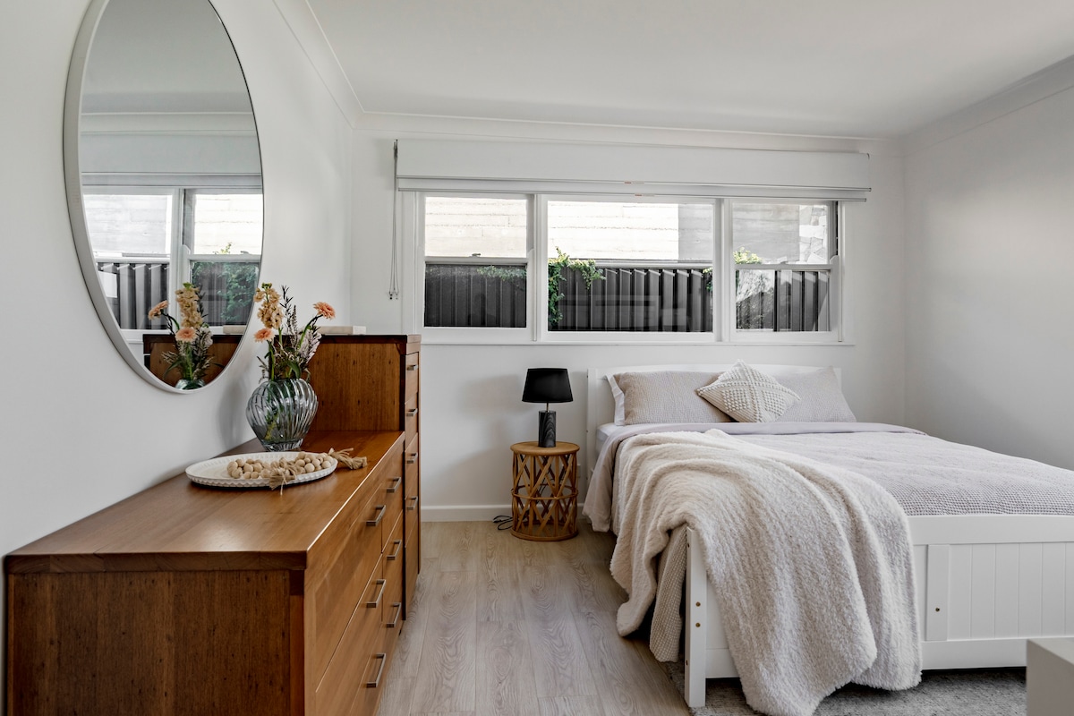 Naša renovirana seoska kuća u Narravalleeju je šarmantno priobalno utočište stvoreno za opuštene odmore, šetnje do plaže i sunčana popodneva na terasi. Smještaj se sastoji od 2 spavaće sobe sa bračnim krevetima, pune kuhinje sa Nespresso aparatom, Wi-Fi mrežom, Netflix-om i privatnom zadnjom terasom sa TV-om na otvorenom i BBQ-om. Prošetajte 800 m do plaže Narrawallee (niz Matron Porter Drive, a zatim pravo u Victor Ave) ili se uputite malo dalje do plaže Mollymook gdje ćete pronaći paviljon Bannisters, supermarket, delikatese i pekaru.