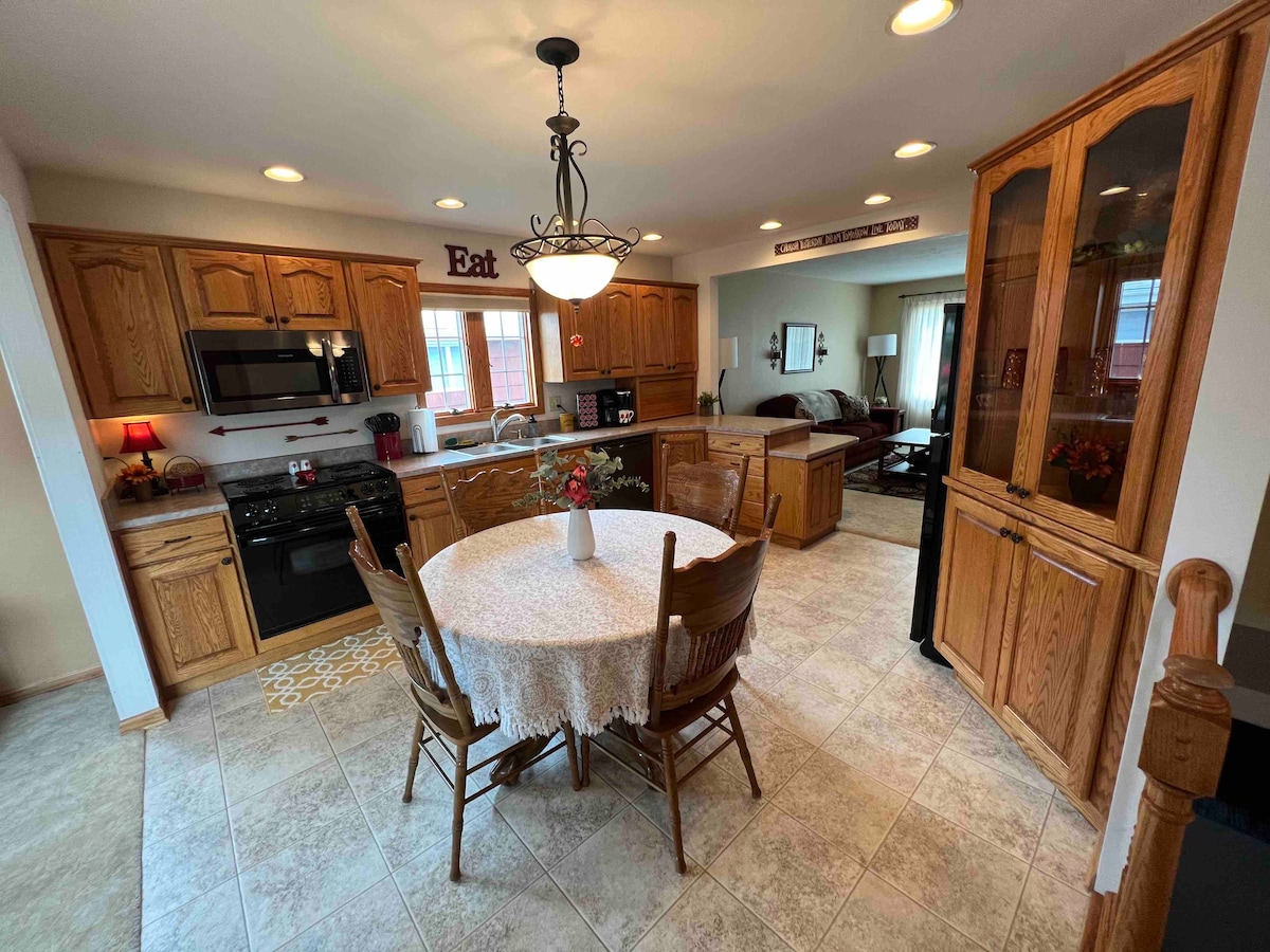 Ovo je cela kuća, 4 spavaće sobe, 2 kupatila, savršeno je opremljena i za kraće i za duže boravke. Nalazi se u sredini grada, nasuprot zoološkog vrta Ruzvelt Park! Uživajte u doručku sa pogledom na izložbu tigrova svakog jutra. Nalazi se na 9 minuta od bolnice Triniti i 20 minuta od aerodroma Minot, idealan je za medicinske sestre ili vazduhoplovne porodice koje čekaju smeštaj. Kuća ima parking na ulici, mašinu za pranje i sušenje veša, kao i potpuno nove uređaje - frižider, šporet i mašinu za pranje sudova