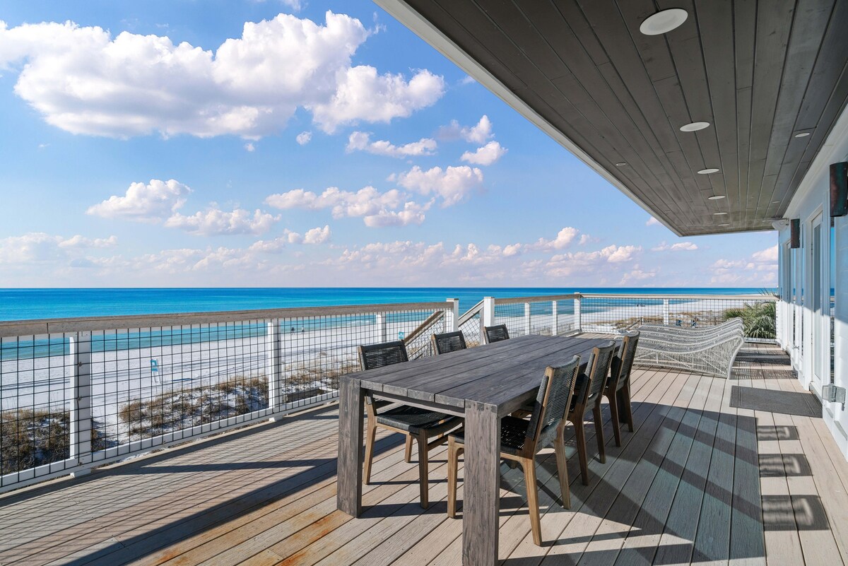 Experience effortless beachfront living with the sand just outside your door. Beachfront 4BR townhome in Miramar Beach that sleeps 10 — perfect for families or groups. Gulf views, 3 patios, full kitchen, and 3 floors to spread out. Designed for easy beach days and relaxed evenings by the water. ⭐ 4.9+ stars for location, cleanliness, and beach access. “Super clean, great space, and steps from the beach — exactly what we wanted.” Free beach chairs (Mar–Aug).