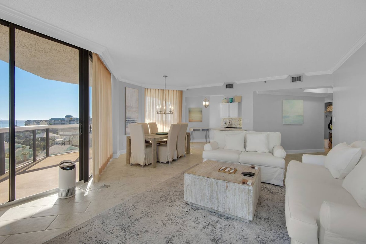 8. fl. elegantan otvoreni studio sa zadivljujućim POGLEDOM, uz plažu u Sandestin Resortu između Destina i 30A. 🛺 Vozilo za golf za boravke duže od 5 noćenja. NOVI bazen i hidromasažna kada. Namještaj West Elm i bračni krevet s pogledom na okean. Elegantna kuhinja sa mašinom za pranje sudova i Keurigom. Wi-Fi, pametni TV od 55inča. Mašina za pranje/sušenje veša. Ogroman balkon za gledanje na more. Uživajte u plaži, restoranima, kupovini, stazama, golfu i zabavi bez napuštanja odmarališta. Karta za tramvaj i teretana. Savršeno za medeni mesec, „baby moon“, devojačko putovanje, samostalno putovanje ili odmor za malu porodicu *ŽIVOTINJE NISU DOZVOLJENE