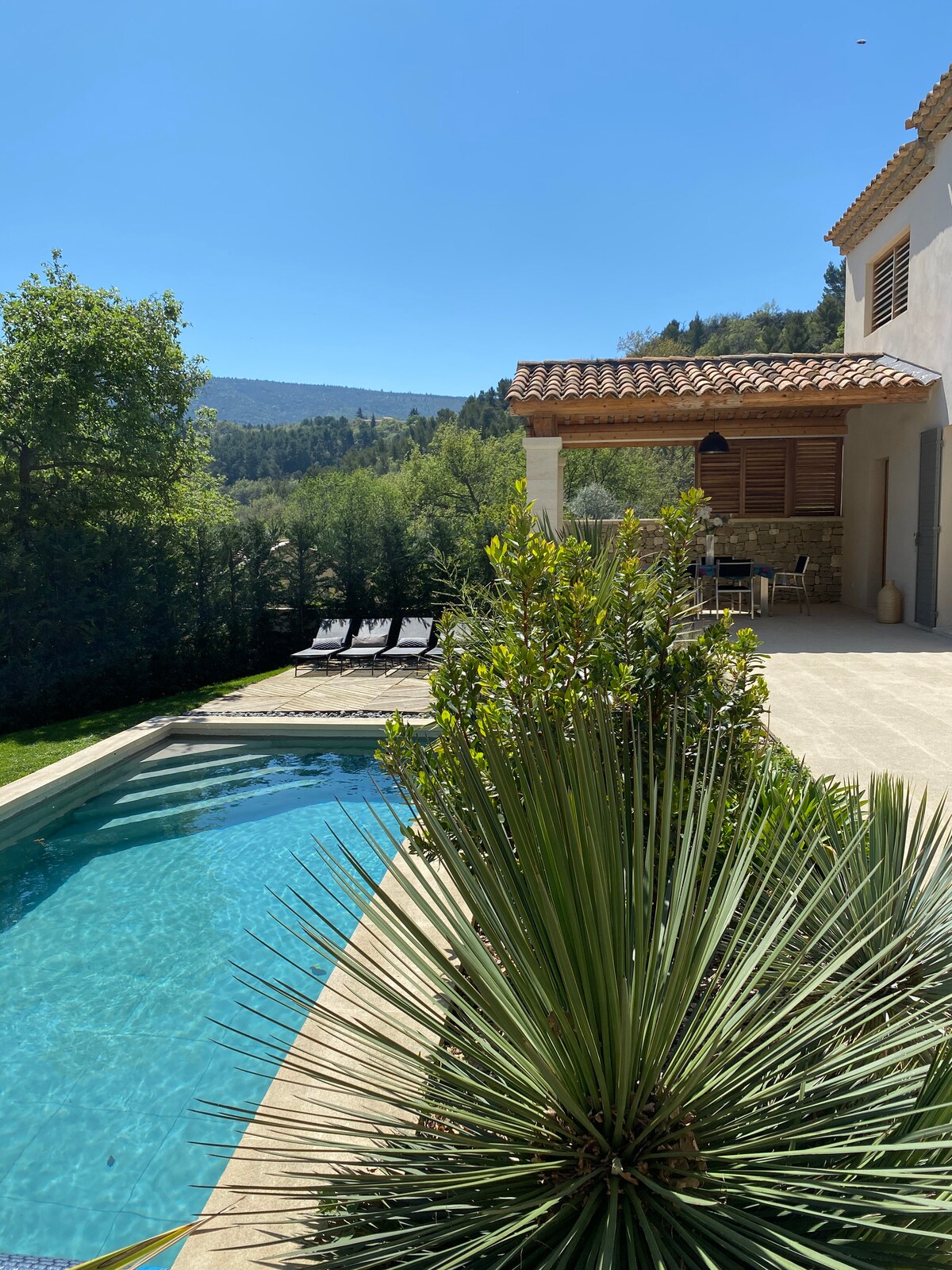 A Lacoste, un des plus beau village de Provence où Pierre Cardin a vécu. Au pied du village notre bastide neuve et moderne construite de matériaux nobles, bois, pierre, fer forger. bénéficiant d'une vue splendide sur le Luberon, sa surface de 160 M² et sa terrasse en pierre de 60 M² vous donnent un espace agréable de vie. la piscine chauffée en demi saison de fin mars à fin octobre et sa terrasse en bois s'ouvre sur un jardin en restanque. le calme et la zénitude du lieu vous combleront