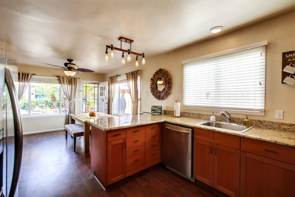 Welcome to Blue Haven! A 3 BR family-friendly, pecentrally-located home (sleeps 6) in a safe neighborhood with all the comforts of home: Peloton Bike, Ping-Pong table, AC, full kitchen, washer/dryer, coffee bar, parking, fast wifi, high end mattresses, large fenced-in outdoor living space with fire pit & grill, Netflix, Disney+. Minutes to La Jolla, the beach, Torrey Pines, UCSD/Scripps, short drive to SD Zoo, downtown, Legoland, & SeaWorld. Perfect for families and professionals
