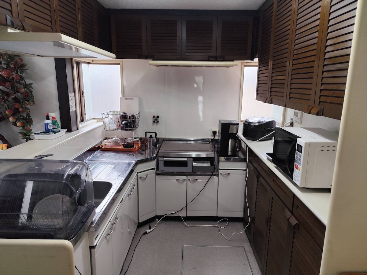 Kuća je izgrađena 2005. godine i ima 3 spavaće sobe, ali je prvi sprat djelimično renoviran u oktobru 2024. godine. Vanjska terasa s panoramskim pogledom na čuvenu surfersku meku na plaži Kanegahama. Posteljina je jedna kraljica, jedan bračni krevet i dva kreveta za jednu osobu. Tu je i futon dušek koji se može koristiti ako je potrebno (nije udoban kao kreveti!). Pošto se ova kuća nalazi u stambenoj četvrti, molimo sve goste da se uzdrže od buke/muzike napolju, posebno po mraku.