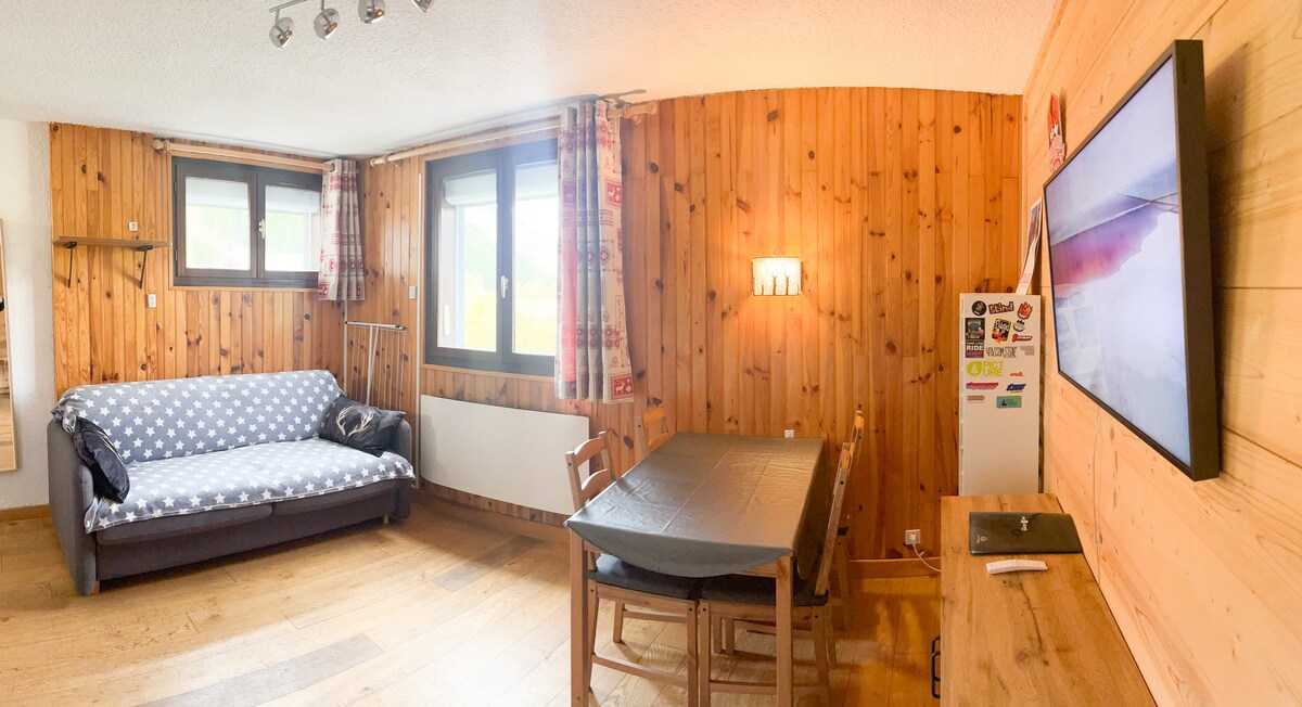 Studio od 12 m2 u podnožju padina u centru odmarališta (rezidencija Côte Brune, 3 minuta hoda od Jandri Ekspresa). Dnevni boravak sa sofom 130x190 ( jorgan 200x200 + 2 jastuka) i TV-om ravnog ekrana, tuš kabinom sa tuš-kabinom, umivaonikom i WC šoljom. Čajna kuhinja opremljena, mikrotalasna, rerna, Senseo aparat za kafu. Ormarić za skijanje Blizina svih prodavnica. Prebivalište sa digikodom. Standardno čišćenje stana je uključeno. Posteljina i peškiri nijesu obezbijeđeni.