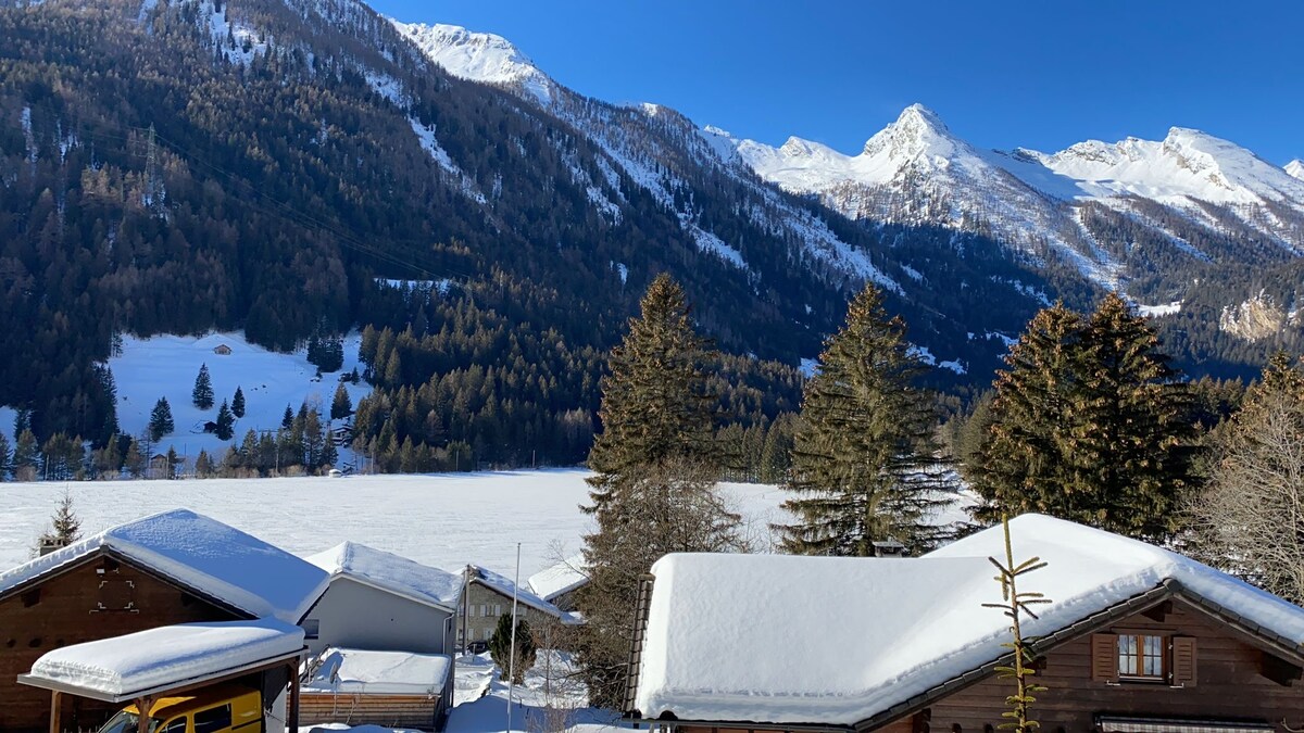 Welcome to our traditional Apline chalet chalet with panoramic views to enjoy skiing, sledging or walking surrounded by stunning mountains. 5 minutes to San Bernardino, 25 min to Splugen and 1.5 hour to Sankt Moritz. 4 separate bedrooms hosting 2 people each, including 2 double bedrooms and 2 twin rooms compactly arranged over 3 floors. Sauna, 2 toilets, 2 showers. 2-3 free parking places. Fully equipped kitchen; dishwasher and washing machine. Ample terrace with panoramic views. Ideally Swiss!