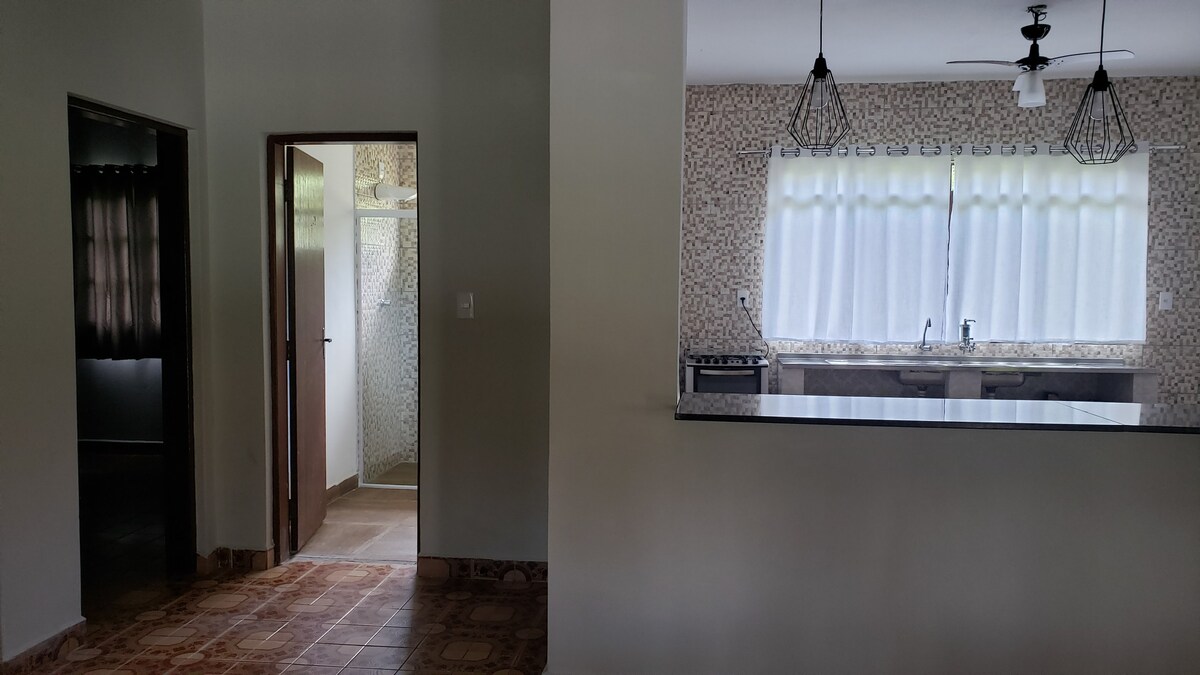 Linda casa em local seguro, arborizado, muitos pássaros e natureza exuberante. Estamos a 150 metros do Parque Aquatico Acqua Thermas e a 7 Km do centro da cidade, ótimo acesso com asfalto, 800 m Carvalho Pinto Guararema cidade turística com vários parques, praças e passeios de trem, beleza exuberante de rios e natureza Cozinha completa Lençóis, mantas e toalhas disponíveis opcionalmente valor a parte ANIMAIS DE ESTIMAÇÃO PORTE PEQUENO SOMENTE SAO ACEITOS MEDIANTE INFORMAR NA CONSULTA DE RESERVA.