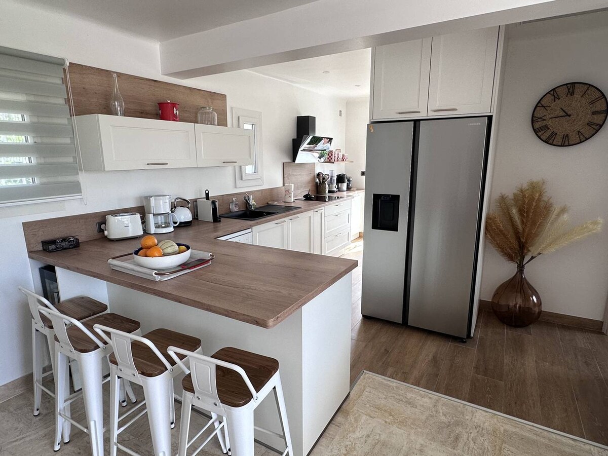 Située à deux pas du centre du village, sur un terrain de plus de 2000 m2 clôturé et arboré, la villa de 140m2 est composée comme suit: Au rez-de-chaussée: magnifique séjour avec cheminée, belle cuisine moderne toute équipée avec accès à la terrasse couverte, un WC séparé, et une très belle suite parentale (Lit 160/200, lit d'appoint enfant) avec salle d'eau privée, donnant sur la piscine et le jardin. A l'étage: 3 chambres (2 lits 140 & 1 lit 160), une salle de bain et un WC indépendant.