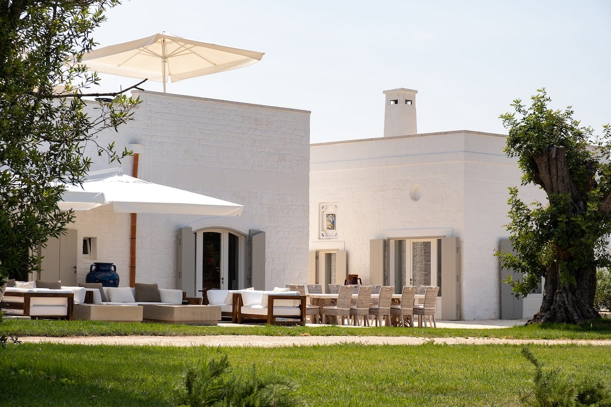 Settle into a life-affirming stay in the Ostuni countryside with this artfully-designed villa. A low profile, complete with ample space and fine interiors will match the highest expectations, as will the cozy wood fireplace, tree-wrapped terrace and rustic bedrooms; a true mix of new and old. The old-world towns of Cisternino and Martina Franca are a short drive through enchanting countryside. Begin your day with a refreshing swim in the lengthy pool that partners this luxurious villa, before emerging and relaxing on the shaded sun recliners. It’s the simplicity yet finery of the property that helps it to stand out so well, with the stone floors and wooden panelled walls providing a cleanly defined and modern-feeling space for friends or family to relax in. A brilliantly polished dining table, rich furniture and cast-iron fireplace helps to round out the attractive interiors, while dry-stone walls splash a touch of Italian countryside character for guests to wake up to. The huge, carved benches and tables of the villa’s gardens are the real star of the property, providing a comfortable and natural gathering space for groups, all under the leafy limbs of the property’s almond trees. Despite being located in peaceful Italian countryside, guests can take advantage of close access to a number of renowned Italian towns, as well as the delights of the Ostuni coastline. It’s hard not to fall in love with nearby Cisternino, which seems frozen in time with its white houses, winding streets and classic piazzas. Guests are less than 20 minutes from a range of sandy beaches, with the Adriatic sunshine and plenty of great swimming options, while the medieval charm and glorious seasonal processions of Ceglie Messapica are also close by. After a packed day, embrace a glass of Brindisi Rosso wine by the glowing fire pit at the villa. Copyright © Luxury Retreats. All rights reserved. BEDROOM & BATHROOM • Bedroom 1 - Primary: King size bed, Ensuite bathroom with rain shower/bathtub combo, Walk-in closet, Safe, Air-conditioning, Direct access to terrace area • Bedroom 2: King size bed, Shared access to hallway bathroom with bedroom 3, Stand-alone rain shower, Air-conditioning, Direct access to garden area • Bedroom 3: King size bed, Shared access to hallway bathroom with bedroom 2, Stand-alone rain shower, Air-conditioning, Direct access to garden area FEATURES & AMENITIES • Alarm system • More under “What this place offers” below STAFF & SERVICES Included: • Concierge service • Towel change (twice a week) • Linen change (once a week on Saturdays) • More under “What this place offers” below Extra Cost (advance notice may be required): • Activities and excursions • More under “Add-on services” below LOCATION Points of Interest • 6.9 km to Cisternino • 7 km to Martina Franca • 18 km to Ceglie Messapica • 22 km to Ostuni Airport • 58 km to Brindisi-Casale Airport (BDS) • 98 km to Bari International Airport (BRI)