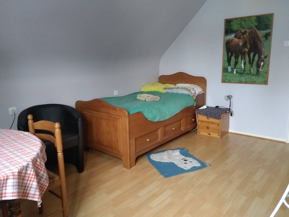Biće nam drago da vas ugostimo u našem udobnom i udobnom studiju. U Olvishajmu, ovaj je blizu A4 za posjetu Alzasu. Studio se sastoji od glavne sobe (20 m2) sa čajnom kuhinjom i kupatila (8 m2) sa lavadom, tušem i WC šoljom. Grijanje je uključeno u cenu, kao i obezbjeđivanje čistih peškira i posteljine. Krevet će biti namješten po vašem dolasku! Treba napomenuti da nijedan javni prevoz ne služi našem selu, potrebno je da se bude motorizovan.
