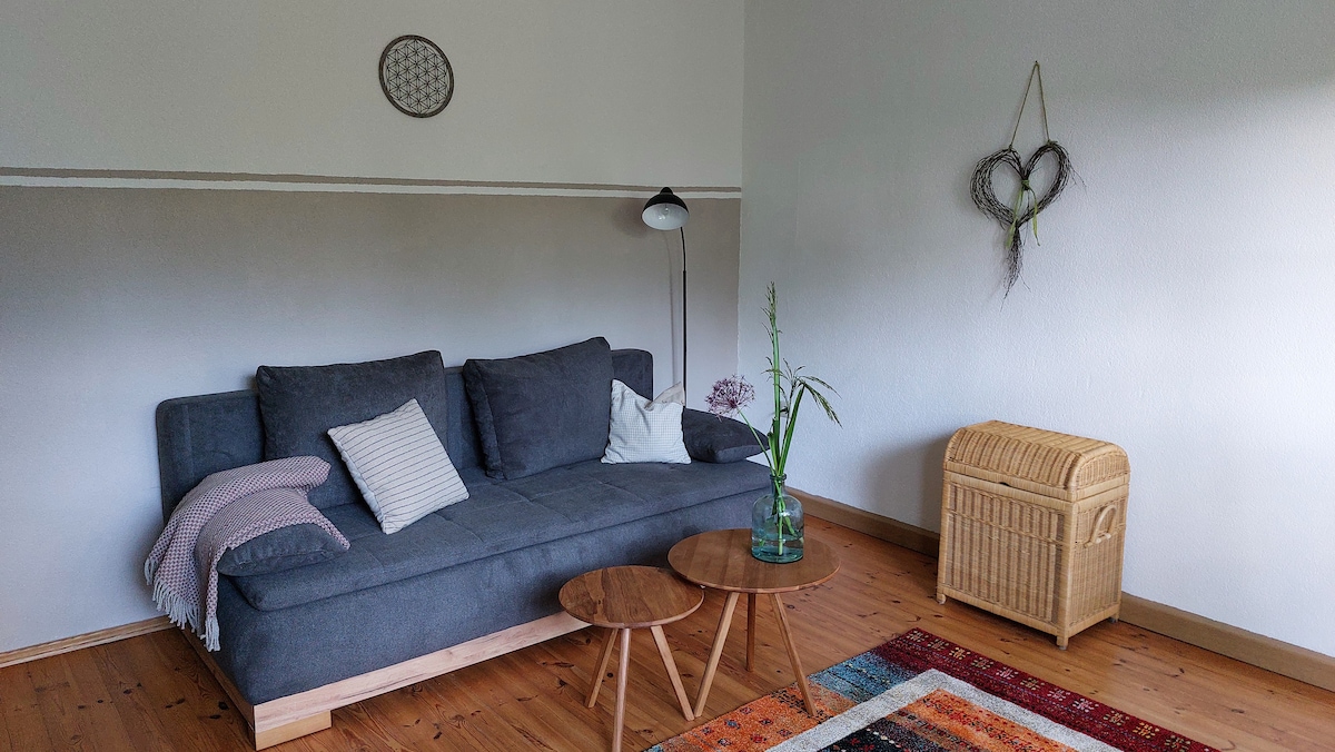 Uživajte u miru i prirodi na periferiji grada i za nekoliko minuta budite u centru Dinkelsbula. Naš osunčani i s ljubavlju namješteni stan nalazi se u prizemlju sa zasebnim ulazom. Pored prostrane dobro opremljene kuhinje sa trpezarijom, tu je i jedna spavaća soba sa udobnim krevetom sa oprugama kao i dnevni boravak sa udobnim kaučem na razvlačenje Na terasi se pruža veličanstven pogled na selo . Parking za vaš automobil je tačno ispred kuće.