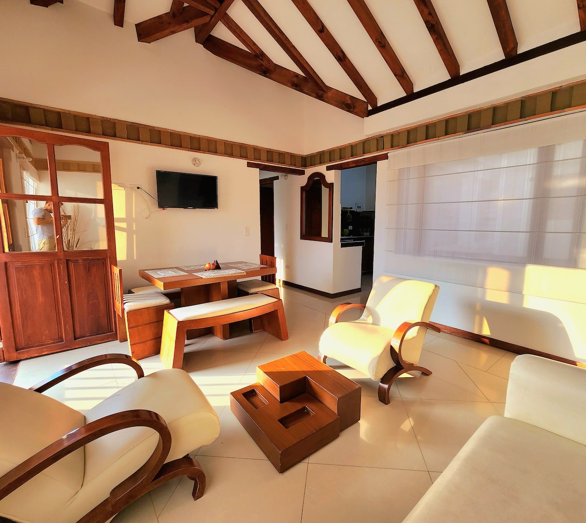 Prelepa kuća na selu, u okviru urbanog rezervata prirode, koju je izgradio moj sin Arhitekt, koji je bio inspirisan dobrodošlicom naših posetilaca, u blizini stabla Klavelina koje je zasadio moj otac, otuda njegovo ime; spektakularan pogled na našu impresivnu i veličanstvenu planinu Iguaque Flora i Fauna masif; zelena, svetla, toplina, udobnost, spokoj; prelep prostor za uživanje sa porodicom, prijateljima; odličan internet i najbolje nekoliko koraka od glavnog trga.