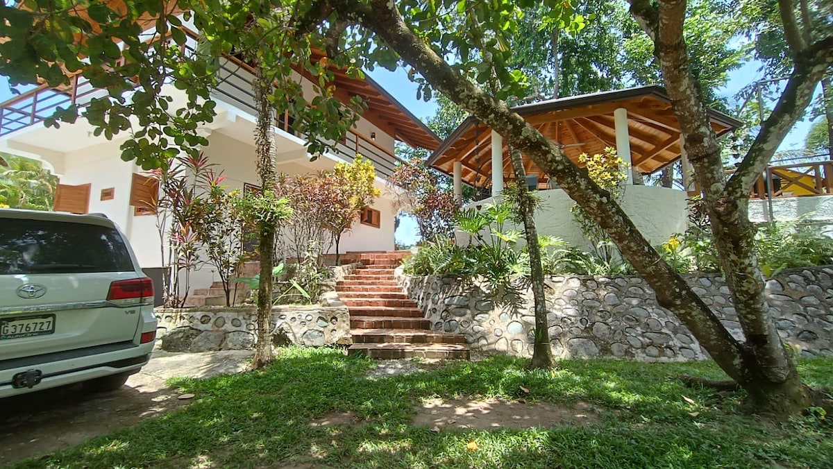 A breathtaking mountain view, with pool, jacuzzi, basketball court, ping pong table, charcoal BBQ, 5 bedrooms/5 bathrooms with fans and all with optional AC, inverter for emergency power outages, equipped kitchen, private parking, and more... Maximum capacity of 12 people. An additional fee of USD $15 per person should be paid if your reservation exceeds 8 people. ALL electricity is INCLUDED except for air conditioners. A USD $100 deposit is collected at arrival if the optional ACs are used.