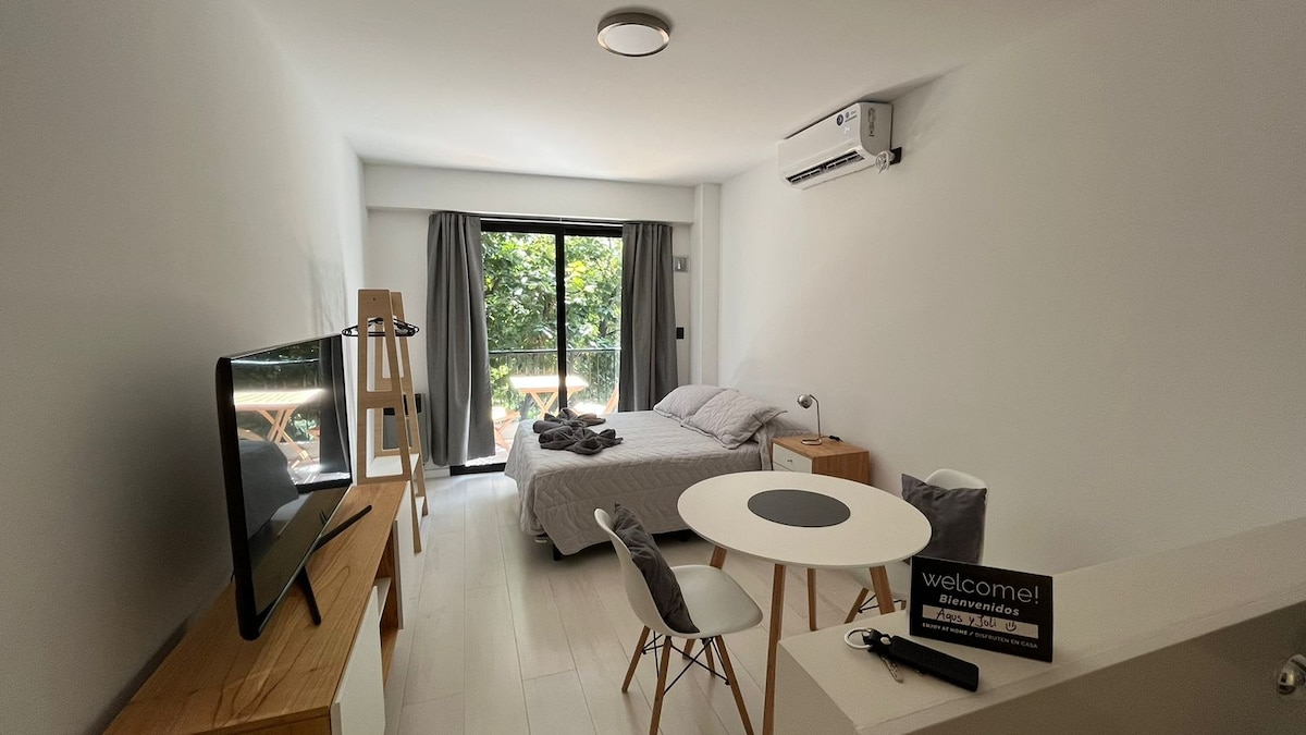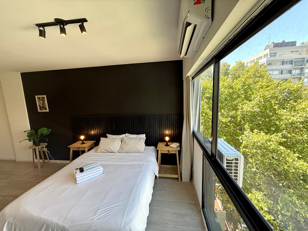 Osobe koje nijesu navedene u rezervaciji su zabranjene. Korišćenje sadržaja isključivo za rezervacije od 3 ili više noćenja (pogledajte uslove korišćenja u nastavku). Uživajte u našem smještaju u geografskom centru Buenos Ajresa, sa privatnim balkonom iznad trga sa suncem i svježim vazduhom. Mjerači od spajanja avenija na kojima ćete pronaći mobilnost kolektiva, taksija, parkova, kafića i restorana. Blizu Movistar Arene, Subte B i tržnih centara