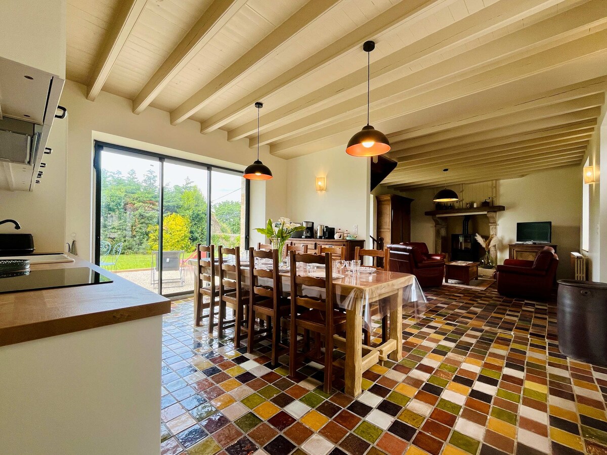 IZUZETNA SEOSKA KUĆA U DEPENDANCES DU CHATEAU, IZ 16. VEKA (200 m2) za do 6 gostiju: - 1 velika spavaća soba na spratu (1 bračni krevet + 1 krevet za jednu osobu) - spavaća soba u sekundi na podu (bračni krevet (bračni krevet) - 1 pomoćni krevet na spratu - 1 kupatilo (sa kadom) na spratu - 2 toaleta (u prizemlju i na podu) - 1 velika dnevna soba - kamin iz velikog perioda (u zavisnosti od toga), kao i opremljena kuhinja otvorena za trpezariju. - 1 sedla
