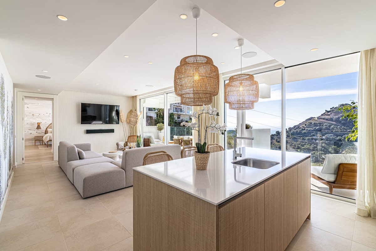 Naš novi, HIGHend stan, samo 8 minuta od centra Marbele. Nudi pogled na more, stvarajući mirno okruženje za vaš španski odmor. Stan ima skandinavsku eleganciju sa čistim linijama, neutralnim tonovima i minimalističkim dizajnom, stvarajući svijetlu i sofisticiranu atmosferu za nezaboravan boravak. Naši gosti imaju besplatan pristup spa centru sa grijanim bazenom, saunom i teretanom, a sve to uz fantastičan pogled na more. Teretana je dobro opremljena sa vrhunskim mašinama, a klupska kuća dodaje društveni element boravku.