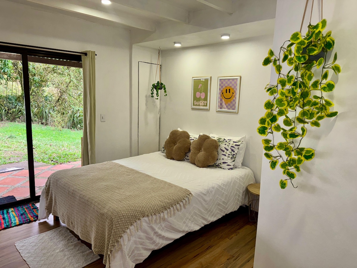 Udoban stan uronjen u šumu oblaka u Monteverdeu, samo 15 minuta od centra grada automobilom. Sveže i mirno mjesto puno prirode. Uvek pokušavam da vam pružim najbolje iskustvo ikada! Udoban stan uronjen u oblačnu šumu Monteverdea, udaljen samo 10 minuta vožnje automobilom od centra zajednice. Sveža atmosfera i puna prirode. Uvek u potrazi za udobnošću gostiju uz održavanje domaće atmosfere.