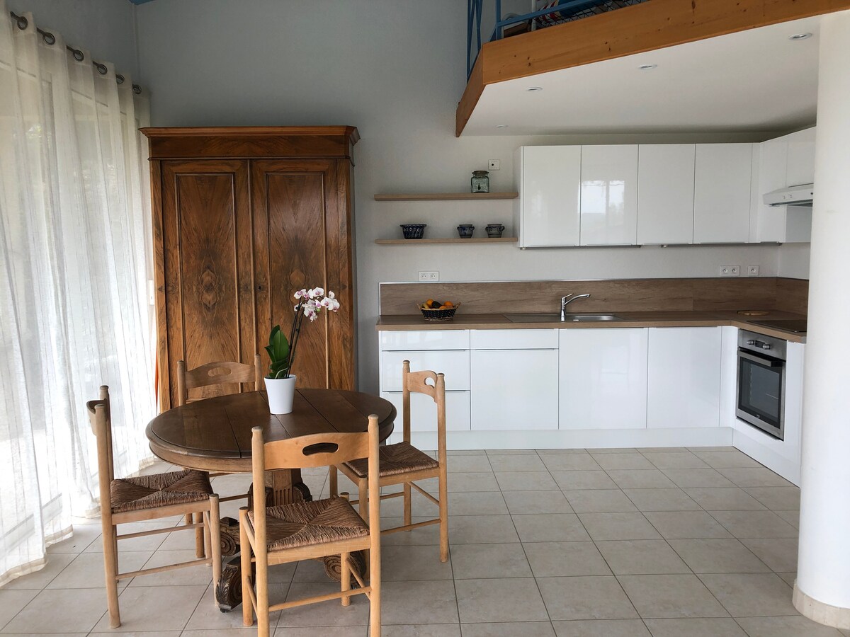 Opustite se u ovom mirnom i elegantnom smeštaju. Bićete usred prirode, ali manje od 5 minuta od istorijskog centra Manoska. Ovaj moderni studio u potkrovlju nudi privatni spoljni prostor sa ležaljkama i roštiljem... Imate pristup celom imanju ( više od 5 hektara), prostoru za opuštanje i beskonačnom bazenu. Pogled je izuzetan. Prava oaza mira. Strateška lokacija za šetnju ili biciklizam, za razgledanje.