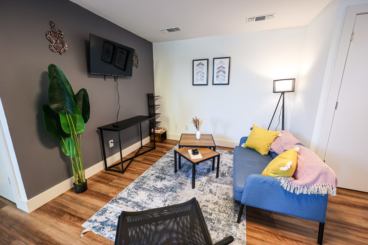 Dobro došli u divan šarmantni grad Conshohocken! Ovaj elegantni i šareni stan sa 1 bračnim krevetom i 1 kupatilom je savršena kapija za sve sfere života. Ovaj stan ima ogromnu dnevnu sobu i kuhinju, kao i odličnu sobu za igre! Obećajemo da će onaj ko odabere ovu jedinicu biti pohvaljen od strane ostatka grupe i posjetilaca! Obezbjeđujemo: besplatan parking u sklopu objekta pozadi za jedno vozilo Alarm i bezbjednost Udoban bračni krevet i jastuci Pametni TV sa kafom i čajem Vazdušni dušek, brzi Wi-Fi