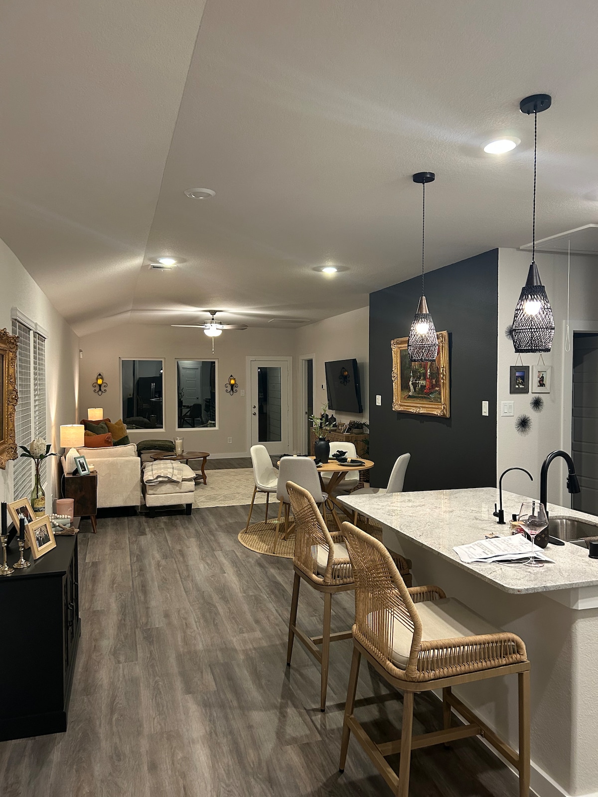 Ovaj prostrani smještaj od 400 kvadratnih metara može udobno da primi do 7 gostiju, što je savršeno za odmor, poslovna ili medicinska pomoć. Opustite se uz jutarnju kafu na otvorenom dvorištu, radite u prostranoj kancelariji ili uživajte u mirnoj šetnji kroz našu mirnu četvrt. Dopašće vam se pogodna lokacija u blizini aerodroma I-45, aerodroma Džordž Buš, plovnog puta Vudlends, restorana, parkova i mnoštva lokalnih aktivnosti. U blizini ima toliko toga da se radi, a mi vam uvijek rado dajemo preporuke!