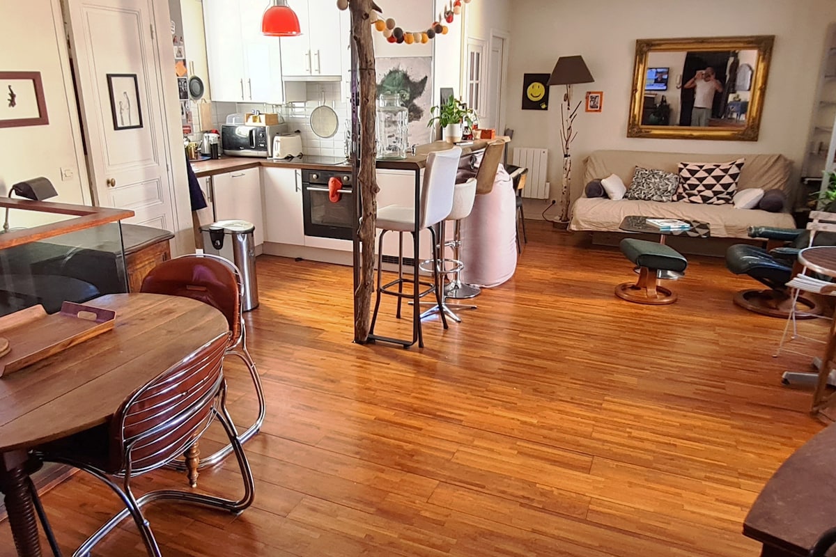 〉Spa Balneo i pozorište su uključeni u smeštaj. Odsjednite u ovom prelijepom luksuznom stanu: ・Odličan za boravak parova, porodica ili grupa prijatelja ・2 bračna kreveta, 1 kauč na razvlačenje i 1 krevet za jednu osobu ・2 kupatila, ・Klima-uređaj, pročišćivač vazduha ・Besplatan Wi-Fi ・2 4K TV + besplatni Netflix ・Opremljena kuhinja: rerna + mikrotalasna rerna + mašina za sudove ・Pranje i sušenje veša ・Krevetac + stolica za bebe ・Prodavnice i podzemne željeznice u blizini 〉Rezervišite svoj odmor u živahnom području blizu Ajfelovog tornja!
