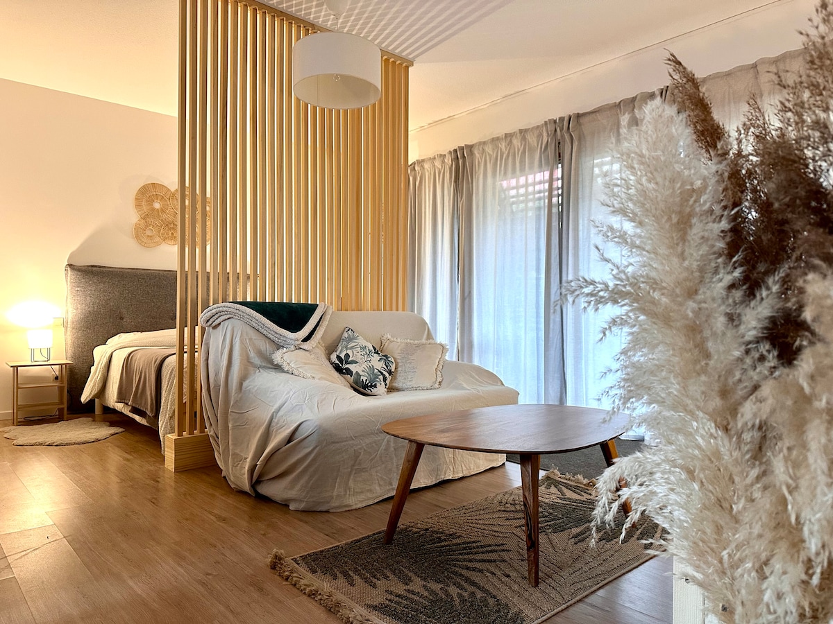 Opustite se u ovom udobnom studiju u Lacenasu, u srcu Zlatnih kamenova. Savršeno za odmor za dvoje ili troje sa bebom. Nudi mir, šarm i udobnost za otkrivanje Božole. 10 minuta od Villefranche-sur-Saône, u centru sela i u blizini soba za prijem, to je savršeno mjesto za uživanje u boravku na selu. Imate poseban ulaz i privatnu terasu da u potpunosti uživate u miru smeštaja. Besplatan parking!
