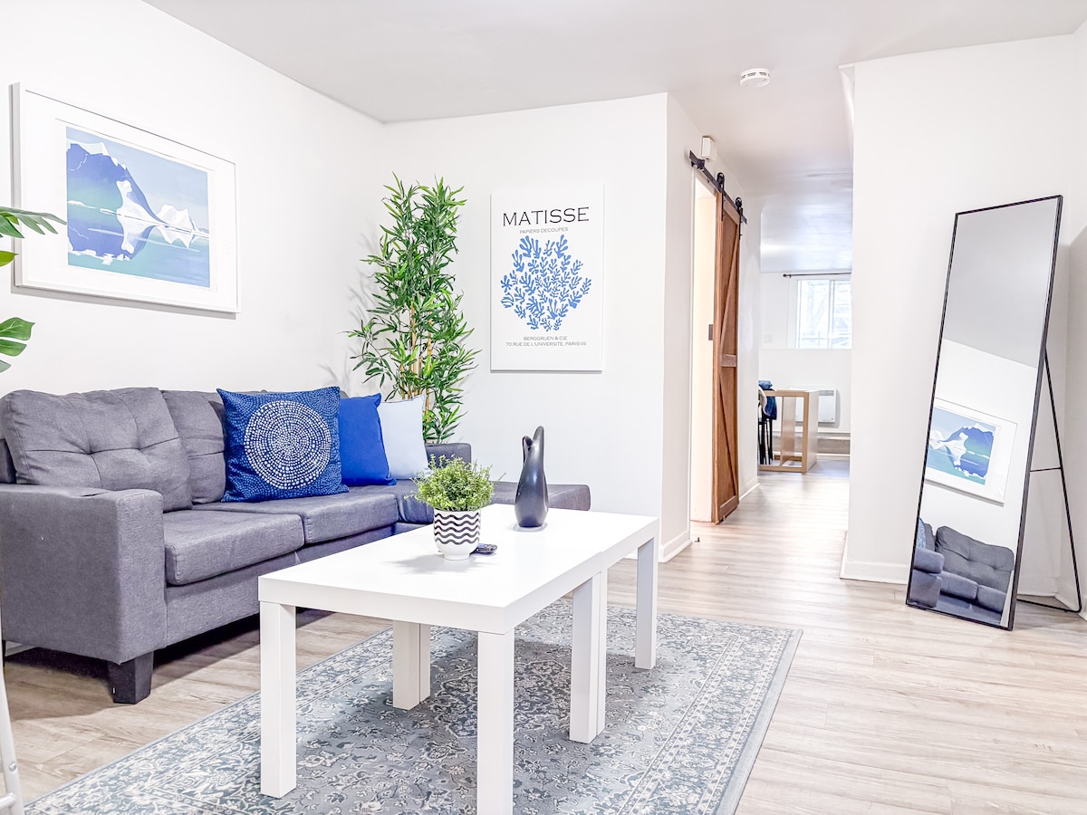 Uživajte u boravku od 31 ili više dana u renoviranom stanu u srcu Ahuntšića, mirnom i porodičnom okruženju udaljenom 10 minuta od stanice metroa Anri-Bourassa (centar grada za 20 minuta). Savršeno za porodicu u posjeti, privremeni boravak u Montrealu. Jedinica (suteren) uključuje 1 zatvorenu spavaću sobu (bračni krevet), dnevni boravak sa sofom na razvlačenje, potpuno opremljenu kuhinju, kancelarijski prostor, brzi Wi-Fi, mašinu za pranje/sušenje veša. 5 minuta od promenade Fleury (kafići, restorani, prodavnice) i u blizini Ile de la Visitation (priroda).