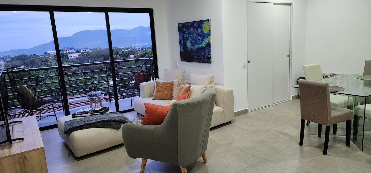 Dobro došli u naš POTPUNO NOVI stan koji se nalazi u Eskalu u San Salvadoru. Možete da uživate u prelepom pogledu na grad i vulkanskom pejzažu – sve to dok ste na nekoliko minuta od supermarketa, tržnih centara, restorana i najnovije atrakcije, Milenijum Plaza. Ovaj novoizgrađeni i potpuno opremljen stan je savršeno čvorište, bilo da ste turist ili ste na poslovnom putu, dok se možete pohvaliti svim udobnostima doma.