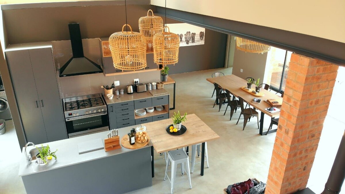 Four of the bedrooms has en-suite bathrooms. The fifth bedroom is a loft room with it's own bathroom downstairs. Two of the en-suite bedrooms are family rooms, with small lofts above the bathrooms with two single beds for children. The loft room has a King size bed and 1 single bed and a beautiful, big balcony for view the breath-taking sunsets of the African Bushveld.