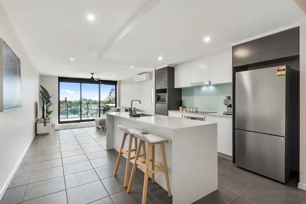Experience luxury in this sophisticated modern apartment next to golden beaches. Located in Buddina, on the Sunshine Coast, this apartment is footsteps away from local shops, beaches and restaurants, having all the modern conveniences one could desire. Stunning design and finishes make this a unique, elegant place to stay. Enjoy a weekend getaway or long stay in this beautiful, spacious, 3 bedroom 2 bath apartment, with unlimited access to a heated pool, mini-gym and outdoor bbq!