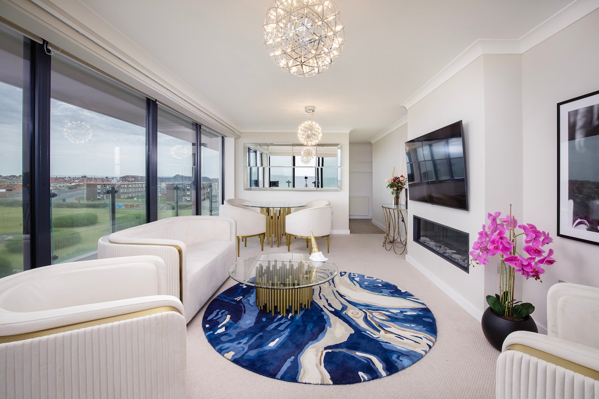 Pravo na šetalištu sa predivnim pogledom na zaliv Morekambe i nasuprot čuvenog hotela Art Deco Midland, ovaj nedavno renovirani savremeni apartman ima novu potpuno opremljenu kuhinju sa ostrvom za 6 osoba i visokokvalitetnim ugrađenim aparatima. Dnevni prostor se graniči sa trpezarijom sa dva velika kauča i 65-inčnim Samsung pametnim televizorom i zvučnom pločom. Spavajte mirno u bračnim krevetima hotelskog kvaliteta sa dovoljno opremljenih ormara. Plus drugi TV kutak, sunčana soba i velika krovna terasa.