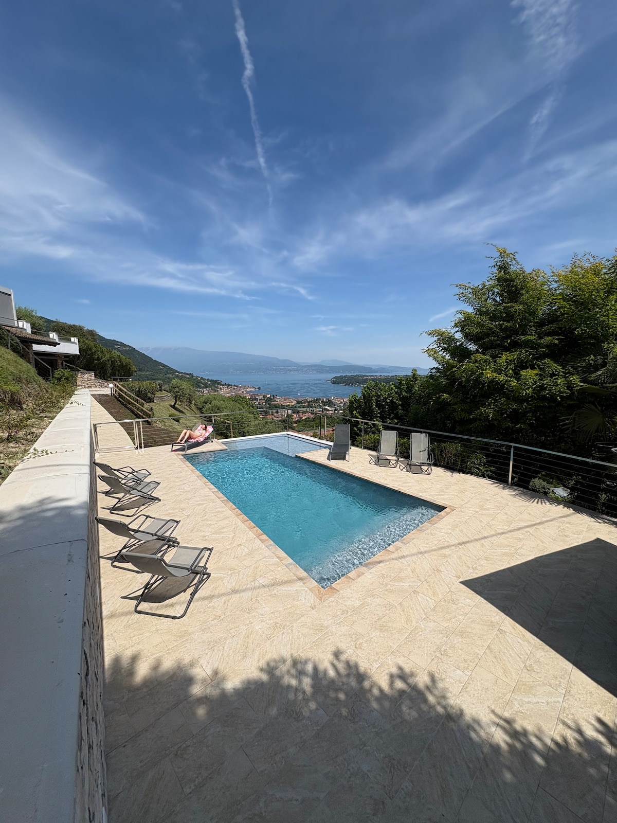 CIN: IT017201B4XHTTE2JG CIR: 017201-CIM-00011 Per gli amanti della tranquillità, la villa sorge in una zona collinare dalla quale si può godere di una incantevole vista mozzafiato sul Golfo di Salò (5 km distanza), sulla Rocca di Manerba d/G, la Penisola di Sirmione fino a vedere in tutta la sua lunghezza la Sponda Veneta del Lago. L'intera villa, le terrazze, il giardino, l'area piscina sono AD USO ESCLUSIVO dei nostri OSPITI. Il relax e la privacy sono i punti forti di Villa Bellavista.