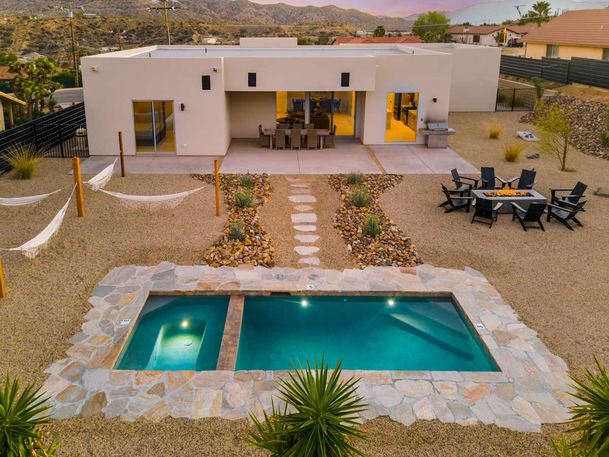 Dobro došli u svoju oazu u Lil Pink! Kada dođete do privatnog imanja od 2 hektara, vaša vilica će se spustiti na pogled na planine od 360 stepeni Odmor i opuštanje možete pronaći u hidromasažnoj kadi, stepenicama od zadnje terase ili u bazenu s kaubojskom kadom i povišenoj terasi u sredini objekta Noću možete da se divite hiljadama zvijezda iznad Uživajte u brzom i jednostavnom pristupu Nacionalnom parku Džošua Tri, Pionirtaunu, Palm Springsu i dolini Juke Šta čekate? Zaljubite se u Lil Pink!