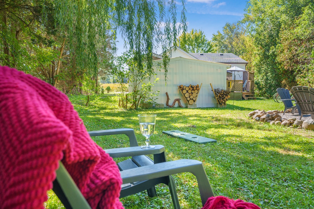 Beautiful property on PRIVATE PENINSULA surrounded by water! Enjoy the lookout with spectacular views of Rondeau Bay and BIRDWATCHING 🕊️🐦⬛ HUGE BACKYARD for dogs to run and play! 🐕🌞🦚 See a multitude of animal species! 🦅🦫🦢🐠🦌🐢🐸🦆🎣 Playground with swings around corner. 5 min to all you need in Blenheim, beaches in Erieau and Rondeau, golf courses and great dining. Get away from the hustle and bustle of everyday life and sit back and relax on your patio overlooking your backyard oasis