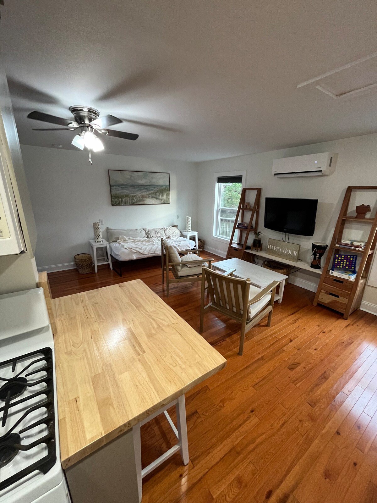 Dobro došli u Curlew Corner! Nova, privatna gostinjska kuća na spratu u jednoj od najpoželjnijih četvrti Čarlstona. Sa bračnim krevetom i kaučem na razvlačenje, ovo je idealno mjesto za parove, prijatelje ili male porodice koje traže odmor u prelijepom gradu! Lokacija! Gostinjska kuća se nalazi na pješačkoj udaljenosti od mnogih restorana, barova, muzičkog mjesta, bioskopa, pijace, studija za jogu, igrališta, mjesta za slijetanje čamaca i prelijepog pogleda na vodu. U blizini centra Čarlstona i Folli Biča, ne možete da nadmašite ovo mjesto!