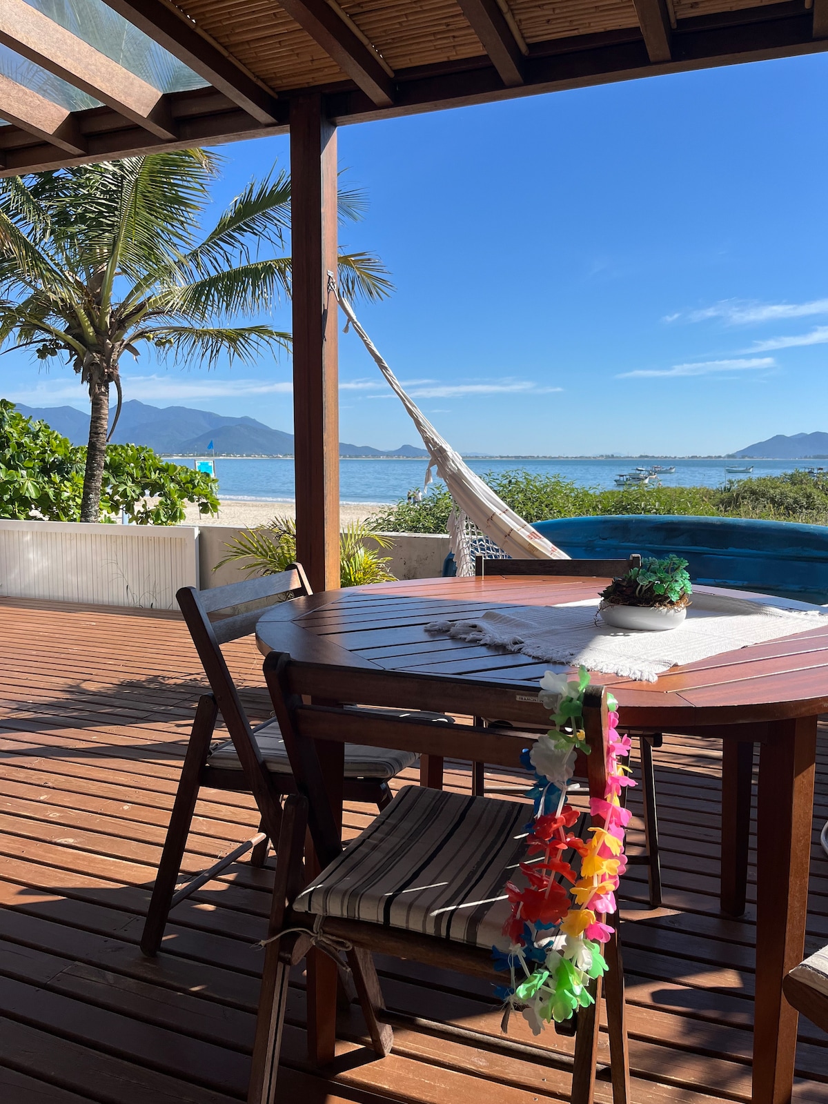 Uma casinha pé na areia localizada na beira da praia da Guarda do Embaú! Perto do centrinho e de tudo que tem de bom por aqui: praias, trilhas, costão, mar, rio, barquinhos, surf, baleias (temporada de Julho a Novembro). E o comércio com lojas, bares, cafés, restaurantes, mercado… É só chegar e aproveitar tudo a pé! A casa é dividida em três, mas somente duas são utilizadas para locação. O portão de acesso é o mesmo para todos, o jardim é área comum e cada casa tem sua varanda reservada.