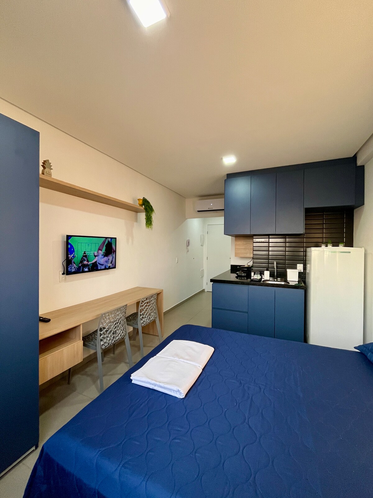 Dobro došli u svoj novi privremeni dom! Moderan i potpuno opremljen studio, sa privilegovanom lokacijom, u najplemenitijoj četvrti grada – sa svime što vam je potrebno na samo nekoliko koraka: barovima, restoranima, supermarketima i glavnim tržnim centrom u okolini. Pametan i elegantan 🛏 smještaj, dizajniran da nudi udobnost i praktičnost u svakom detalju. Minimalistička dekoracija stvara prijatno i elegantno okruženje, idealno za one koji traže miran i funkcionalan boravak.