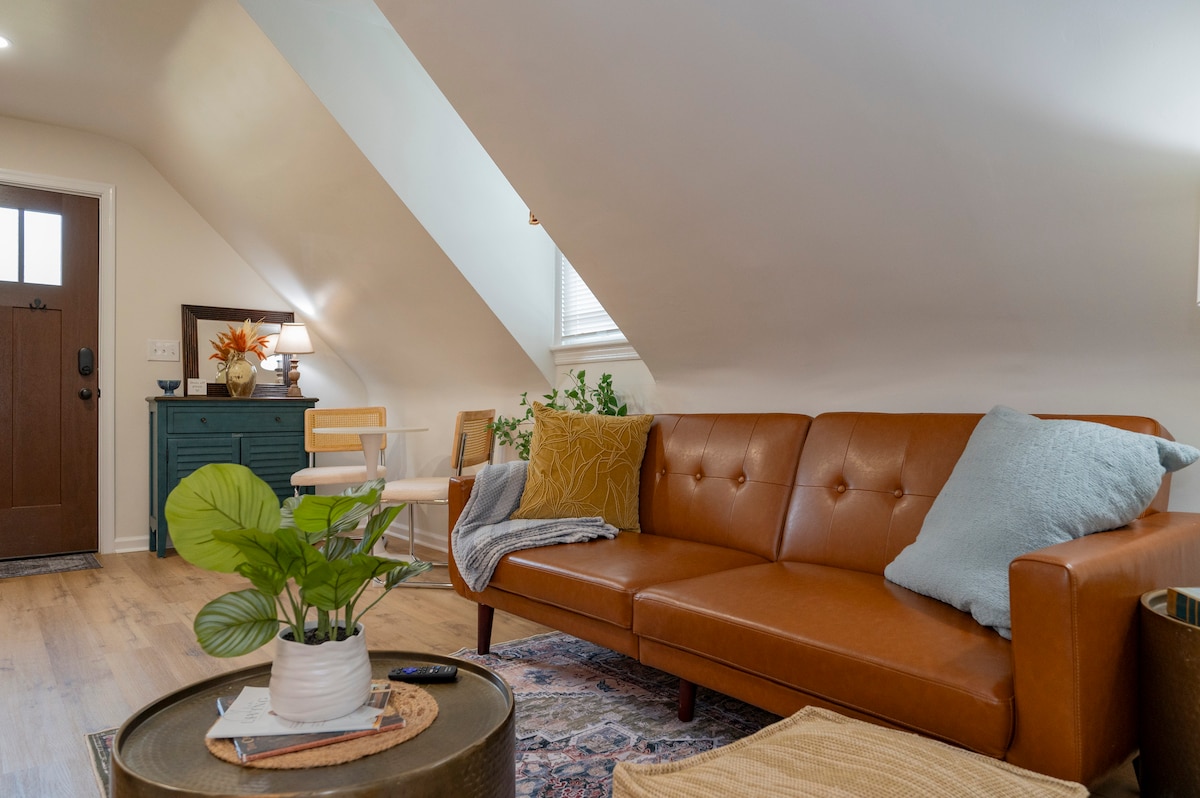 Svideće vam se boravak u ovom svetlom otvorenom, prozračnom potkrovlju sa modernim dekorom iz sredine veka u srcu centra Linčburga, Va. Ovo potkrovlje je ogromno, ali je trenutno postavljeno samo za dva gosta. Postoji zasebna spavaća soba sa bračnim krevetom, ormarom i prostorom za sjedenje Pošto se ovaj potkrovlje nalazi iznad nekoliko drugih potkrovlja, molimo goste da ne dovode dodatne ljude, jer to uznemirava stanare i goste ispod ovog potkrovlja, kao i da izuvaju cipele u potkrovlju Pristupačno samo jednim stepeništem.