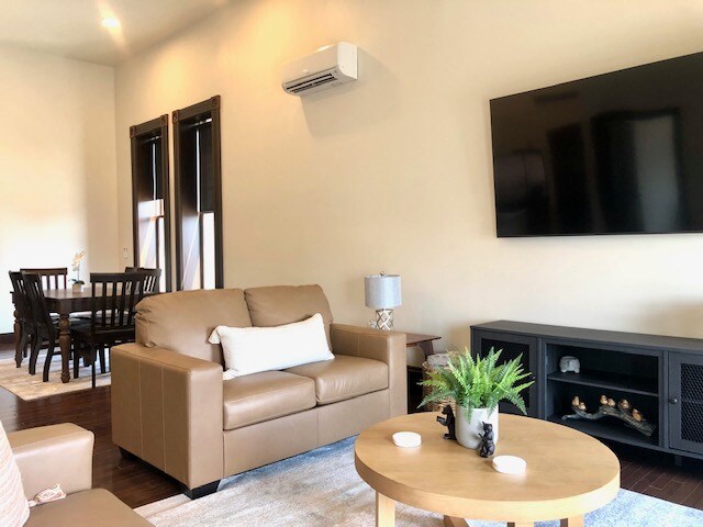 Odmorite se i opustite u ovoj mirnoj oazi. Bez obzira na to da li ste u gradu zbog posebnog događaja, poslovnog putovanja ili vikenda, naći ćete mir i opuštanje u hotelu The Mainstay. Mainstay je novouređena samostojeća studio kuća za goste. Ima potpuno funkcionalnu kuhinju, veliku tuš-kabinu sa klupom, bide, 55-inčni HD TV, električni kamin i terasu na otvorenom i ognjište. Uživajte u ovom jedinstvenom boravku sa bujnim i prirodnim okruženjem, zadržavajući moderne pogodnosti.