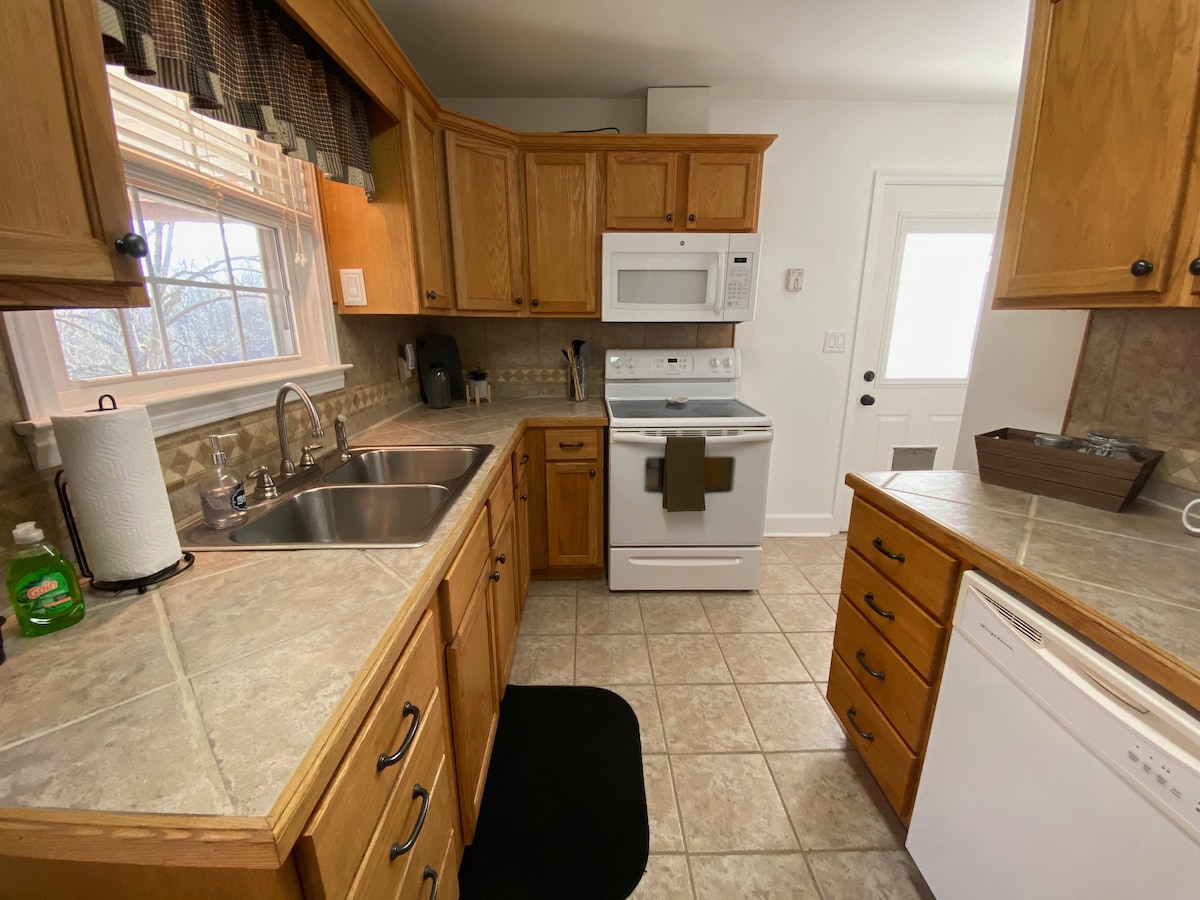 Opustite se sa celom porodicom u ovoj mirnoj seoskoj kućici koja se nalazi u brdima Gornjeg dela Tenesija. Uživajte u sjajnom pogledu sa zadnje terase - pogledajte jelene i druge divlje životinje. Napravite smore dok uživate u prostoru za piknik i kaminu. Nalazi se u blizini parka Bej 's Mountain, konferencijskog centra Meadowview i vodenog centra Kingsport. Samo pola milje od I-26. Smeštaj je dostupan za dugoročne izvršne rezervacije sa pristupom garaži i skladištu.