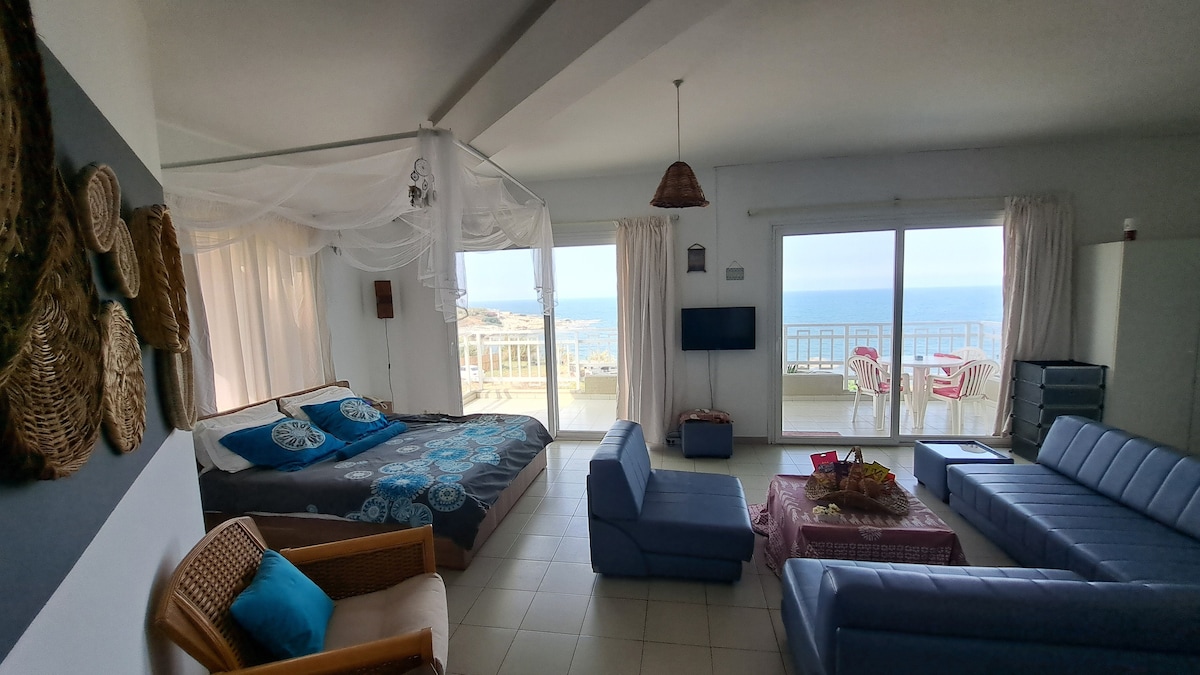 Beachfront chalet strategically located between Jbeil and Batroun, with an amazing beach view and access to a swimming-pool and basketball court. Monthly offer: $1,200 / month Winter seasonal offer for 5 months - Nov to Mar $5,000 Wake up to a stunning sea view and enjoy breathtaking sunsets, whether you’re lying in bed, chilling on the sofa, or sipping a drink on its spacious balcony. This open-space chalet is in a beautiful calm resort just by the beach.