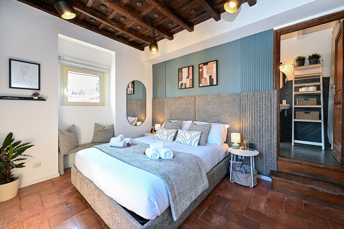 Dobro došli u stan Cancelleria, koji se nalazi u srcu istorijskog centra Rima! Ovaj novouređeni stan nudi jedinstven spoj moderne udobnosti i istorijskog šarma. Šta će vam se svidjeti: - Nevjerovatna lokacija s pogledom na Palaco dela Cancelleria, najljepšu renesansnu palatu u Rimu, koju je izgradio Bramante(1486. godine) - Potpuno renoviran 2024. godine, sa vrhunskim savremenim dekorom - Bračni krevet (180 x 200 cm) i kauč na razvlačenje sa dušekom od 20 cm za najveću udobnost - Originalni drveni plafon koji datira vekovima unazad
